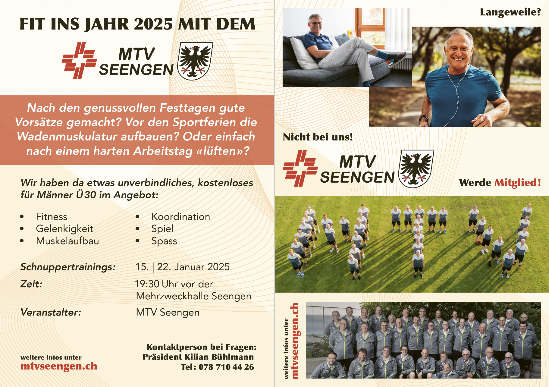 Der MTV Seengen bietet zum Start ins 2025 wiederum Schnupperlektionen an, sozusagen «Mittwochabende der offenen Tür».
